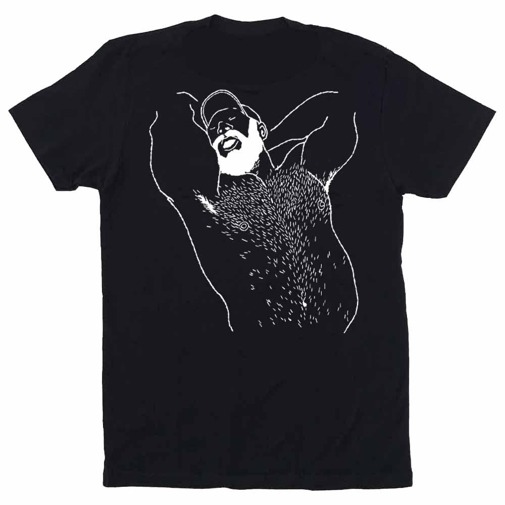 Kinky Needles Arms Up Bearded Bear White Print T-Shirt